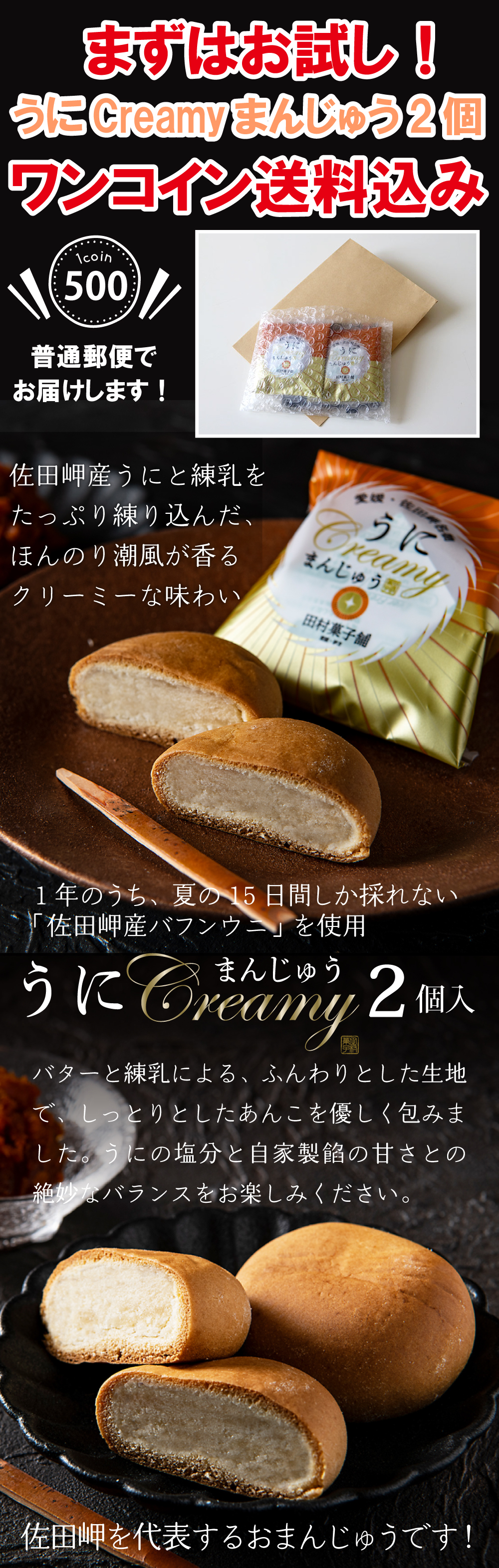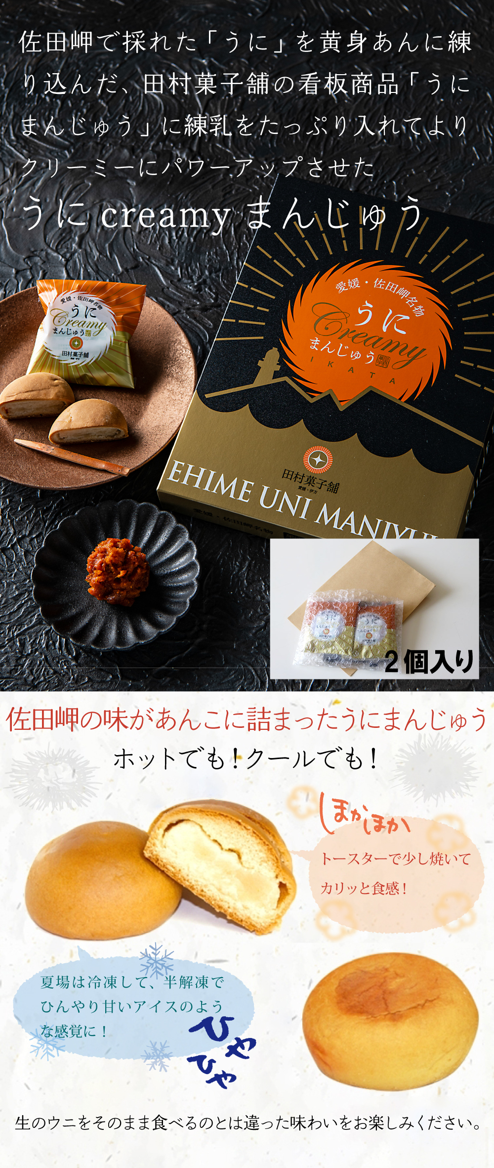 まずはお試し!佐田岬産バフンウニを練り込んだ うにcreamyまんじゅう