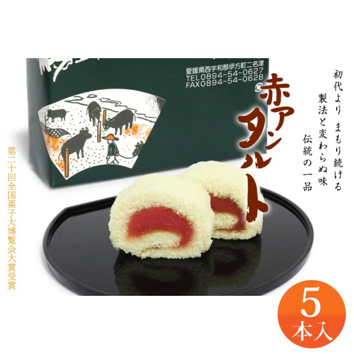愛媛・南予で親しまれる伝統の赤餡タルト。田村菓子舗では自家製の餡をじっくり練り上げてさらに加熱。甘さ控えめでやさしい味わいに仕上げています。