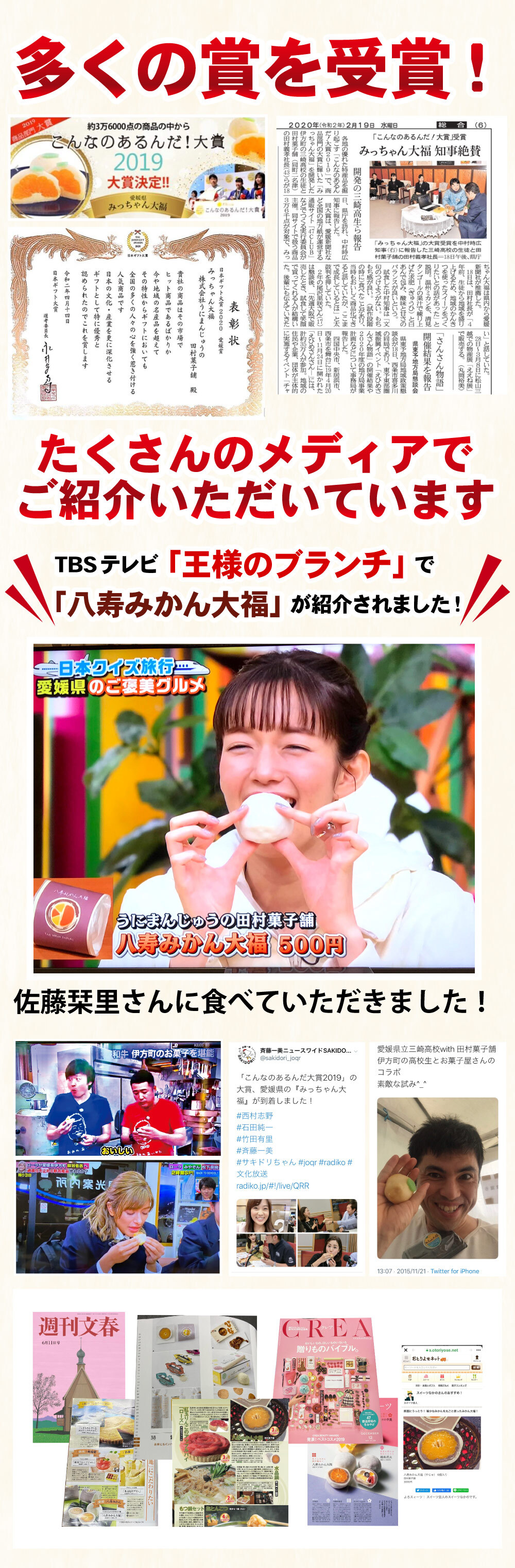 田村菓子舗のお菓子はたくさんの賞を受賞、たくさんのメディアに取り上げていただいています。