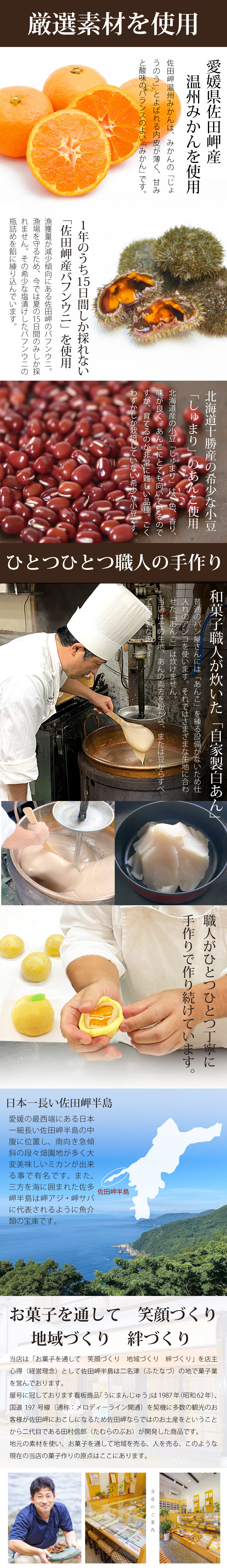 バフンウニを練り込んだおまんじゅうや愛媛産みかんを包んだ大福、