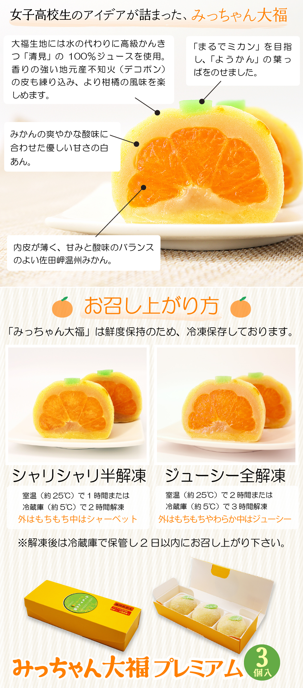 女子高生の想いから生まれた、佐田岬産完熟みかんと白あんの大福。